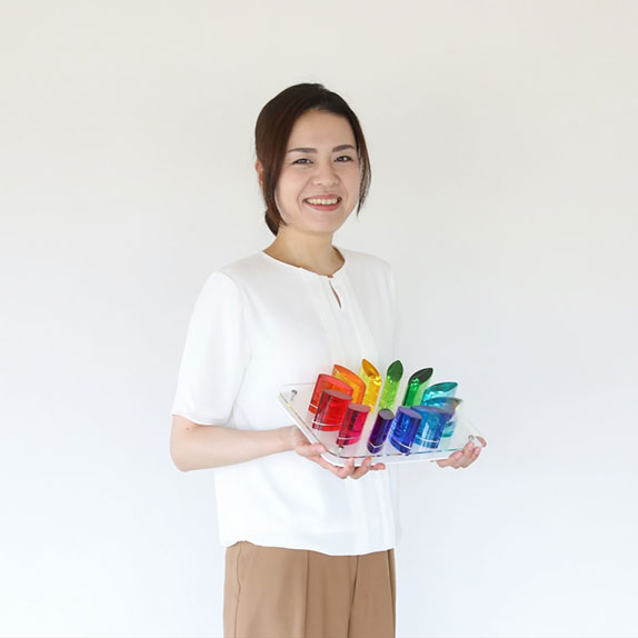 12色の綺麗なカラーグラスに一目惚れしました。 自分の生まれ持った個性を知って、これまでの人間関係、結婚後の夫婦関係や子育て等腑に落ちることばかりでした。自分を客観的に見る大切さ、人との違いを『あきらかに認める』ことに気付いたからだと思います。私は33歳で死別シングルマザーとなり、息子と娘を育てあげ
